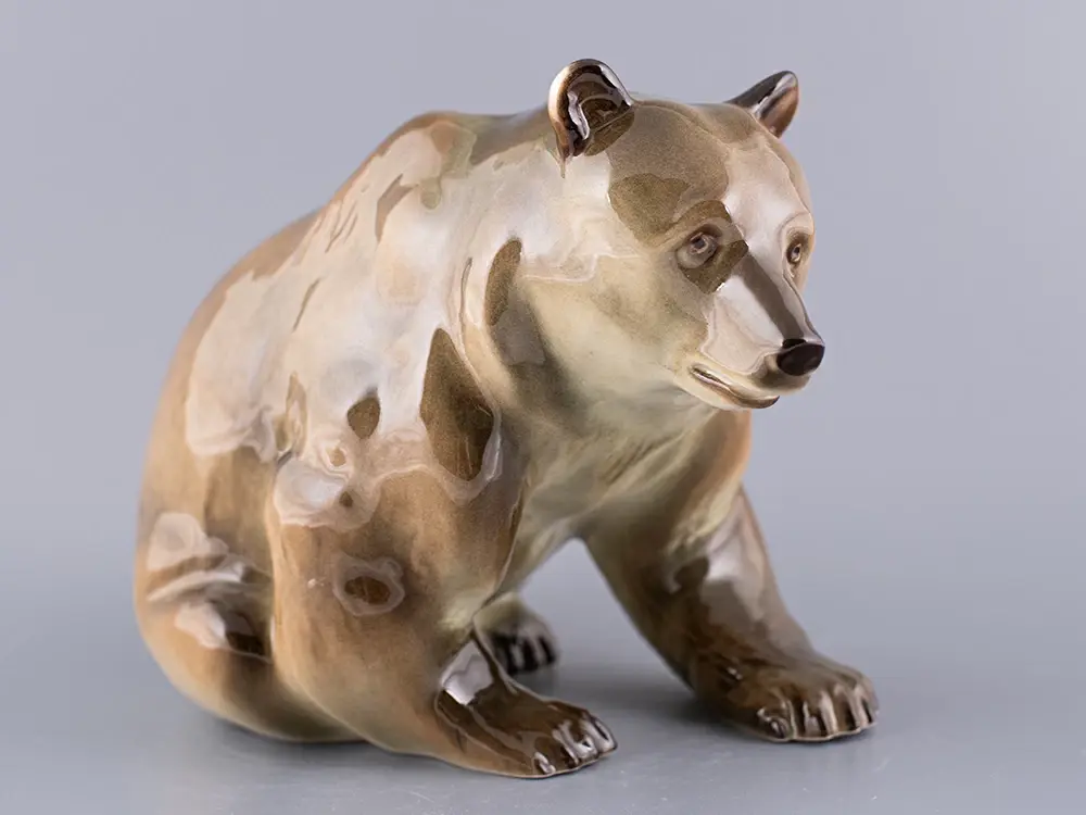 Скульптура Медведь бурый изготовлена на Императорском фарфоровом заводе из мягкого фарфора в технике ручной подглазурной росписи. Автор формы - Веселов П.П. Высота скульптуры - 13,8 см.