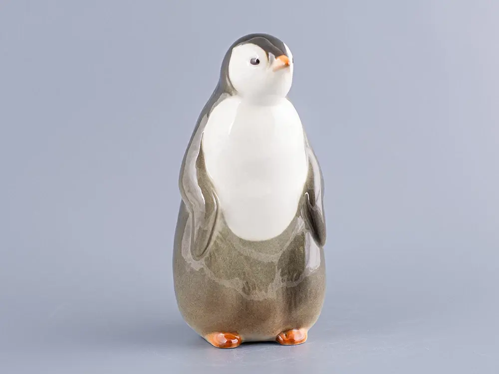 Забавная пара пингвинят – самец (пингвин №1) и самочка (пингвин №2) появились в 1960-е годы. Горделивый мальчик вытянулся и приподнял голову – смотрит немного свысока, а любопытная девочка слегка подалась вперед – что-то привлекло ее внимание. Фигурки пингвинят, выпускаемые в советское время, были с тонко проработанными, "пушистыми" спинками. Новые – почти гладкие, но это не сильно портит очаровательных птиц.