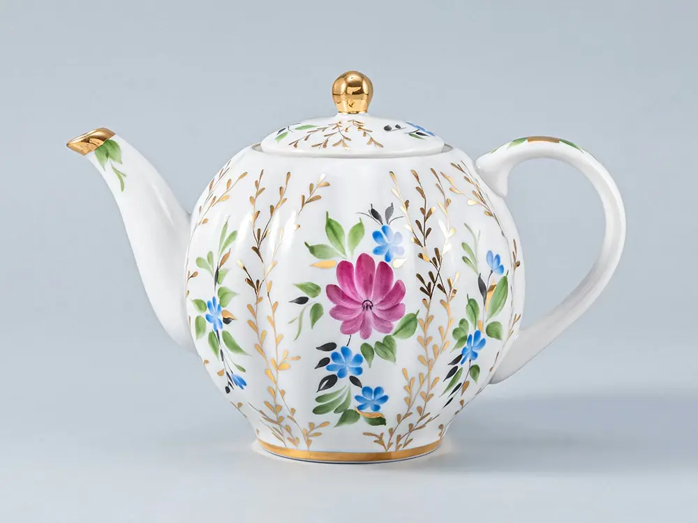 Заварочный чайник "Тюльпан Золотые травки" от Императорского фарфорового завода сочетает в себе элегантность формы и богатство декора. Изготовленный из твердого фарфора, он украшен деколью с элементами ручной росписи, что придает ему уникальность и эксклюзивность. Ручная работа мастера подчеркивает красоту золотых травок, созданных по мотивам природы России. Этот чайник объемом 600 мл станет прекрасным дополнением к вашему столу, придавая чаепитию особую атмосферу уюта и тепла.