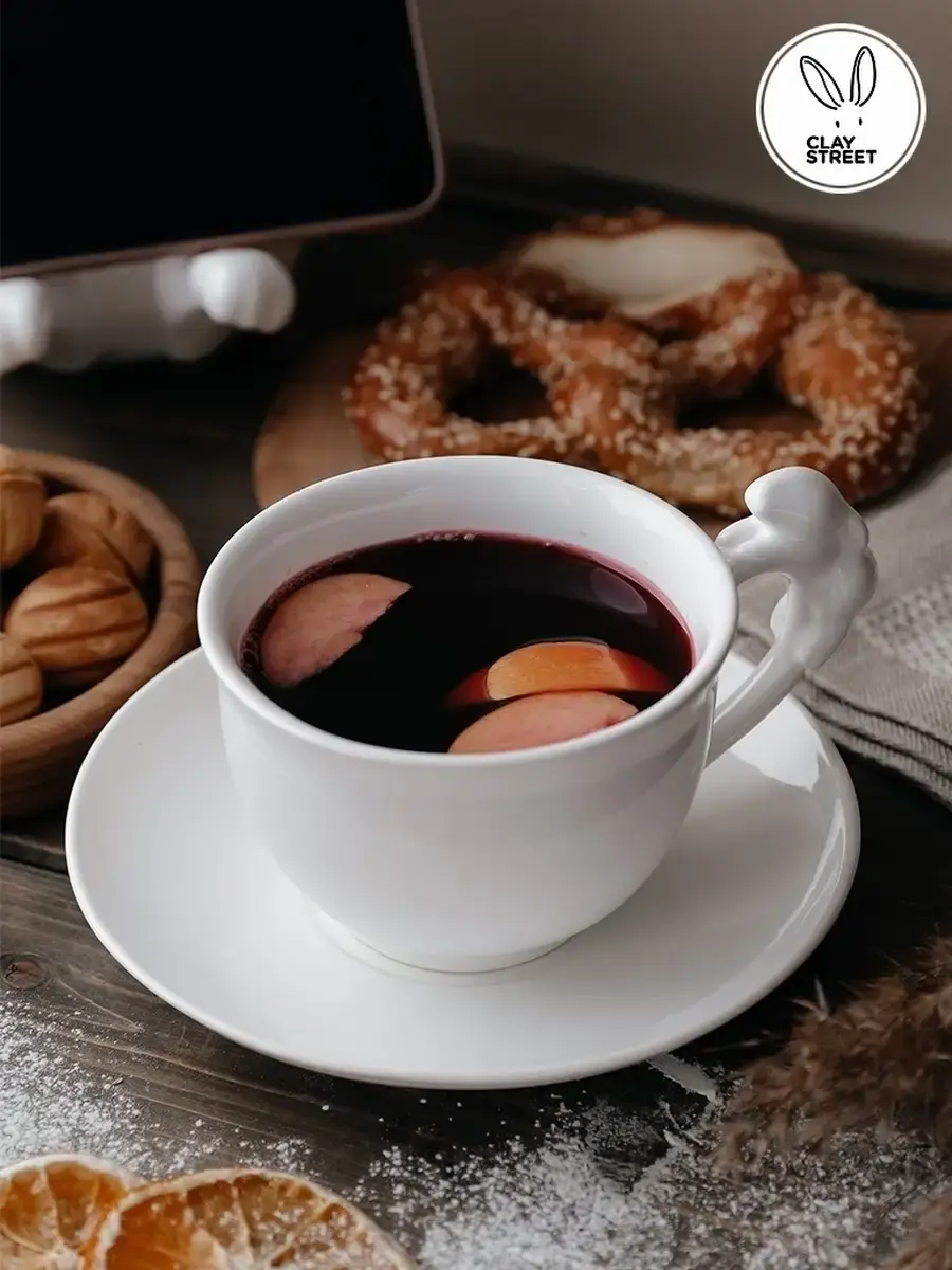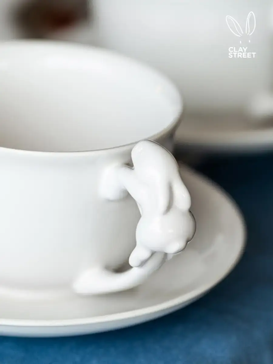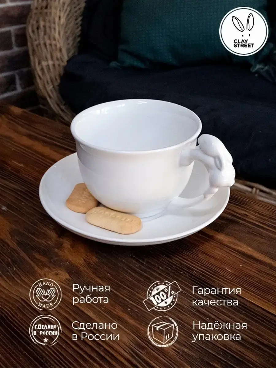 Чайный набор, в который входит чашка с блюдцем – это 330 ми-ми-миллилитров озорства, фарфоровой нежности и удовольствия! Чайная пара из фарфора гармонично смотрится на любом столе. Она станет украшением на вашей кухне, создаст атмосферу уюта дома и на даче. Чашка с кроликом покорит сердце и понравится бабушке и маме, внучке, дочери и сестре, свекрови и теще. Благодаря белому цвету комплект для чаепития имеет нарядный и праздничный вид, который подчеркнет оттенки любимого напитка. В кружке будет эффектно смотреться каркаде, черный индийский чай и оригинальный синий чай. Нарядная посуда из фарфора придаст торжественности событию, украсит обычный завтрак и повседневный обед. Лаконичный и оригинальный дизайн, белый цвет изделия и конечно же Кролик может стать источником идей при подборе предметов декора, например, для тематической вечеринки в английском стиле. Станет оригинальным акцентом и стильным аксессуаром для оформления свадебной фотосессии «Утро невесты» или для косплея на тему «Алиса в стране чудес». Романтичный набор из кружки для чая с зайчиком и с блюдцем - красивый и полезный подарок родителям на юбилей, семейной паре на фарфоровую свадьбу, любимой на день Святого Валентина, молодоженам на новоселье, любимому человеку на Новый год, Рождество и светлую Пасху, и просто без повода другу или подруге, когда вы хотите сделать приятный сюрприз любимому человеку или подарок себе. Авторская посуда ручной работы - эффектный и функциональный презент учителю на выпускной в школе или на 1 сентября, начальнику и коллеге. Сочетается с предметами сервировки стола CLAYSTREET: вы можете собрать чайный сервиз или подарочный набор, дополнив его чайником, сахарницей или второй чайной парой! Озорные зайцы олицетворяют плодородие и счастливый случай, а еще они - символ года и талисман изобилия, удачи, семейного счастья и исполнения желаний, особенно тех, кто родился в год Кролика (кота). Красивая посуда с кроликами – замечательный новогодний сувенир, который порадует любую хозяйку