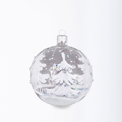 Шар прозрачный, с нанесенным рисунком, наполненный декоративным снегом.