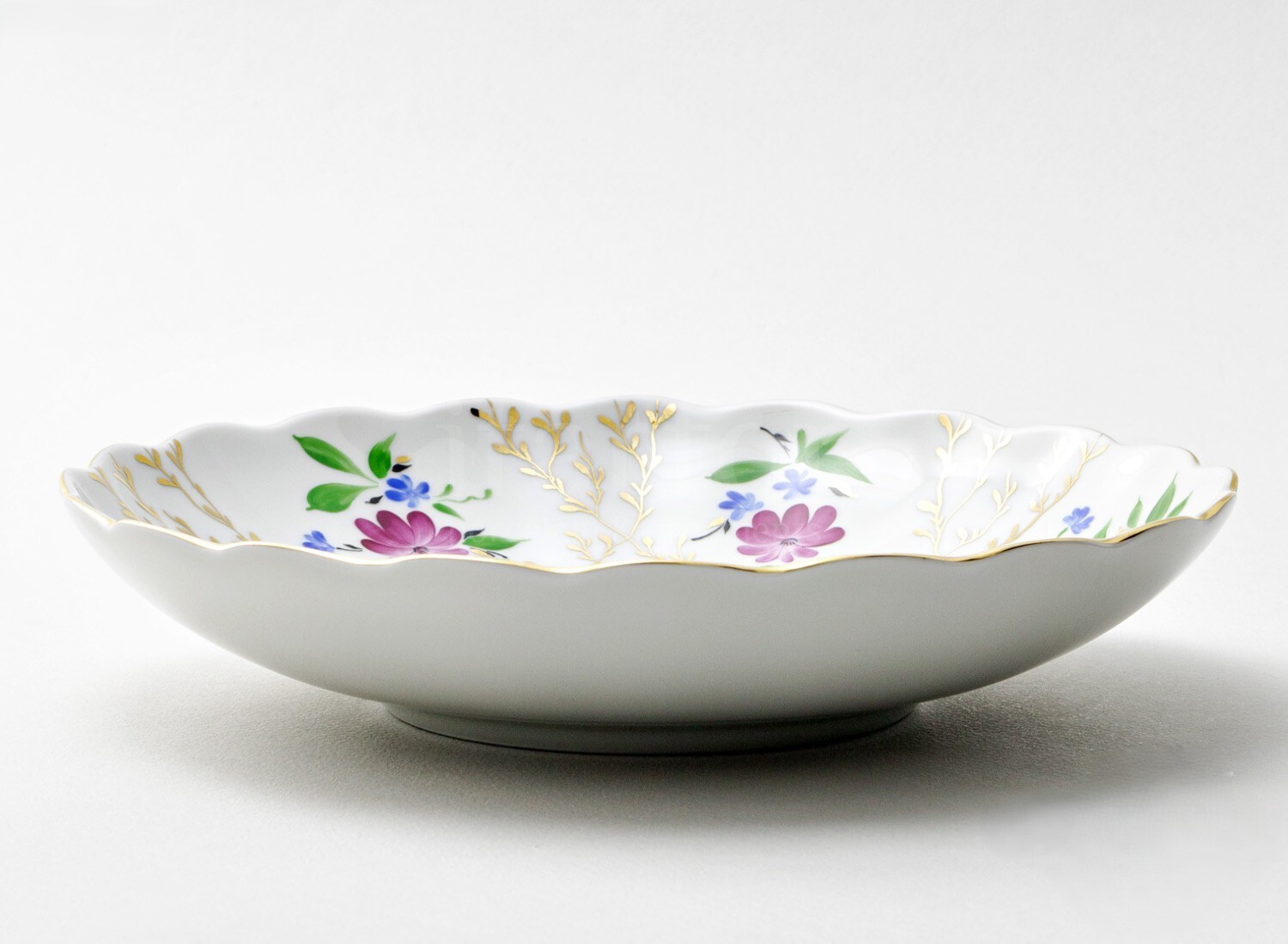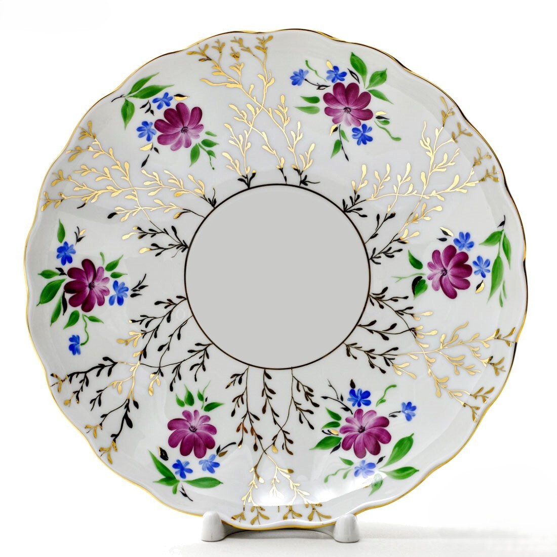 Предлагаем вашему вниманию сухарницу от известного бренда «Императорский фарфоровый завод». Изготовленная из твердого фарфора, эта модель украшена ручной росписью и изображает золотые травы. Дизайн выполнен талантливой художницей Семеновой А. Н. Продукт имеет диаметр 21.5 см, объем 800 мл и высоту всего 4.8 см. Весит изделие 455 грамм. Эта стильная сухарница станет настоящим украшением вашего стола!